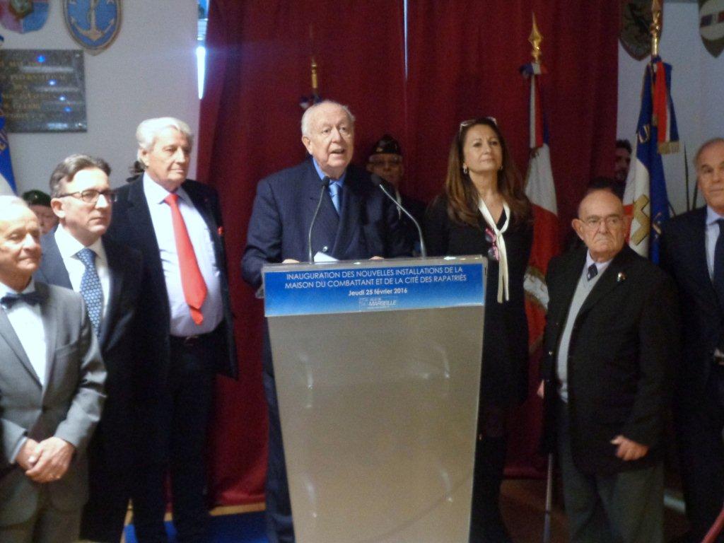 C’est en présence de Monsieur le Sénateur Maire Jean Claude Gaudin entouré de nombreux élus , personnalités , présidents d’associations et adhérents qu’à eu lieu Le Jeudi 17 Février 2016 l’inauguration de la Cité des Rapatriés et de la maison du combattant au 50 Bd de la Corderie 13007 Marseille
